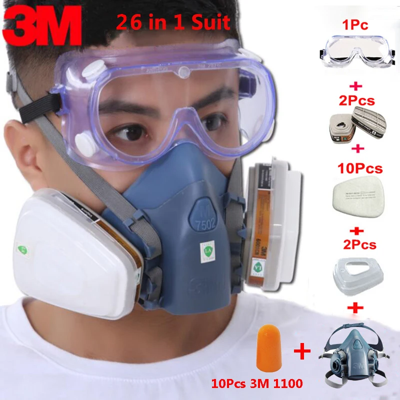 Goede Koop 26 In 1 Pak 3 M 7502 Gas Masker Met Veiligheid Werk 1621 Bril Industrie Stofdicht Ademhalingsapparaatmasker Met 1100 Oordopje Goedkoop.