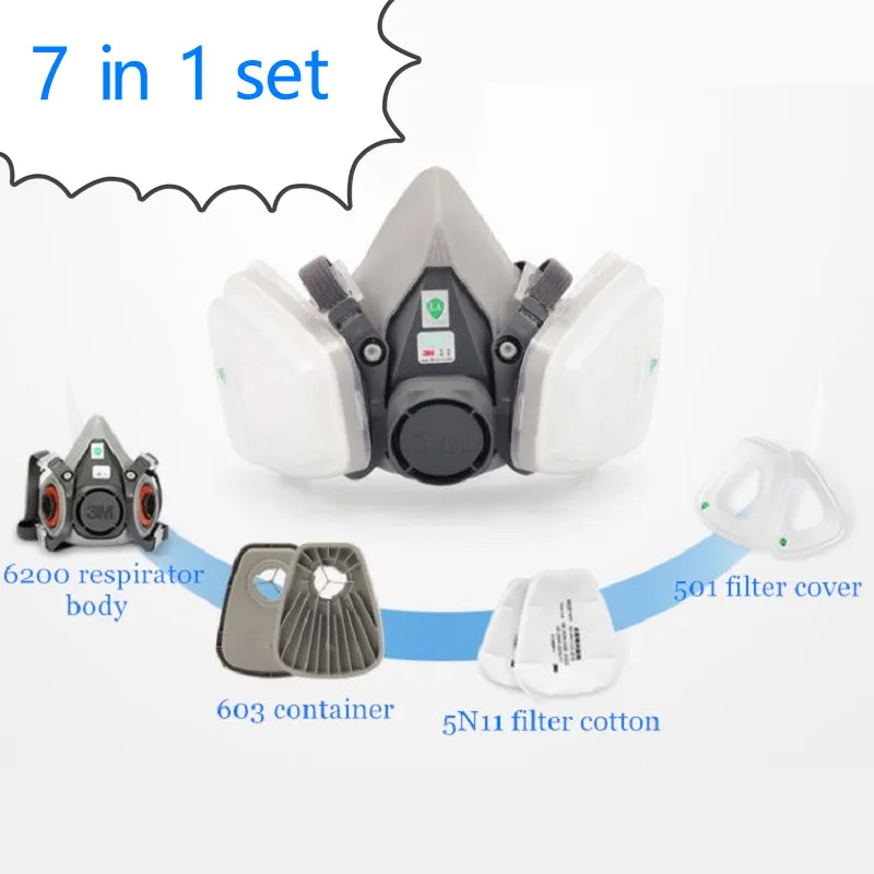 Beste Kopen 7 in 1 Pak 3 M 6200 603 Werken Gas Masker Beschermende Shield stofdicht Respirator Deeltje Filter Arbeid schilderen Spuiten Masker Goedkoop.