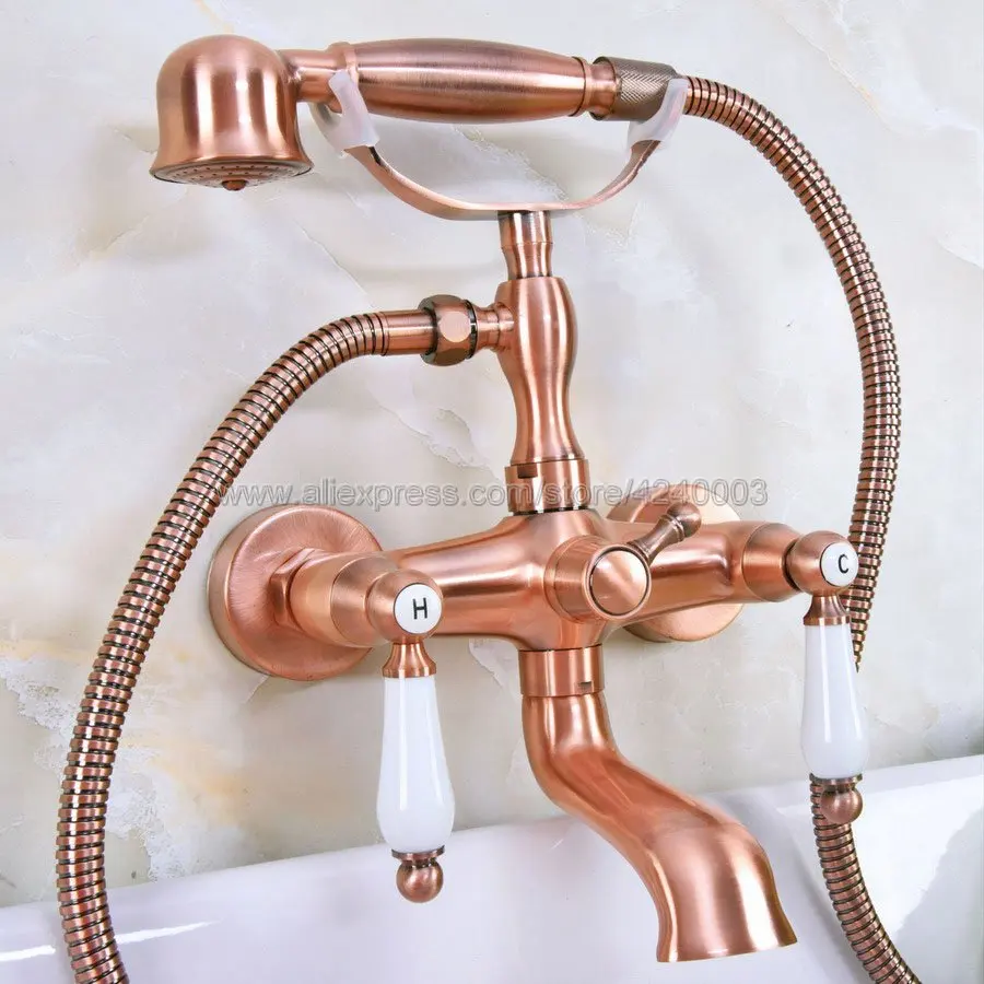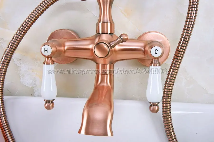 Goede Kopen Bad Kranen Messing Luxe Rood Koper Douchekraan Set Keramische Handvat Handheld Regendouche Kraan Mengkraan Kna327 Goedkoop