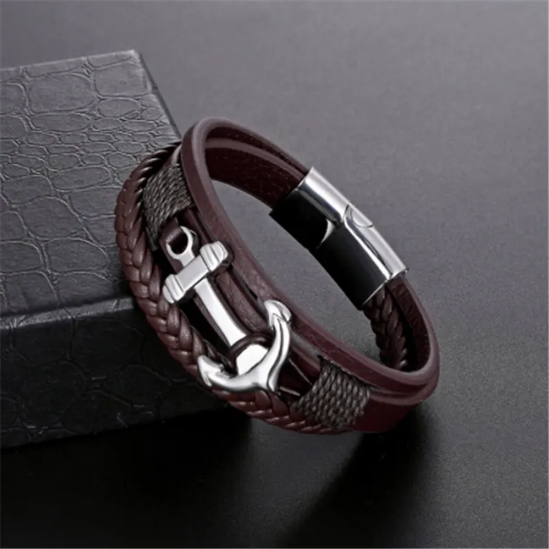 Kopen Goedkoop 2018 Nieuwe Mode Zilveren Kleur Anker Armbanden Mannen Charme Survival Touw Ketting Lederen Armband Rvs Antieke Sieraden Prijs