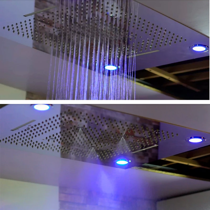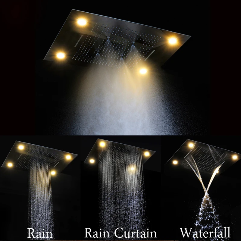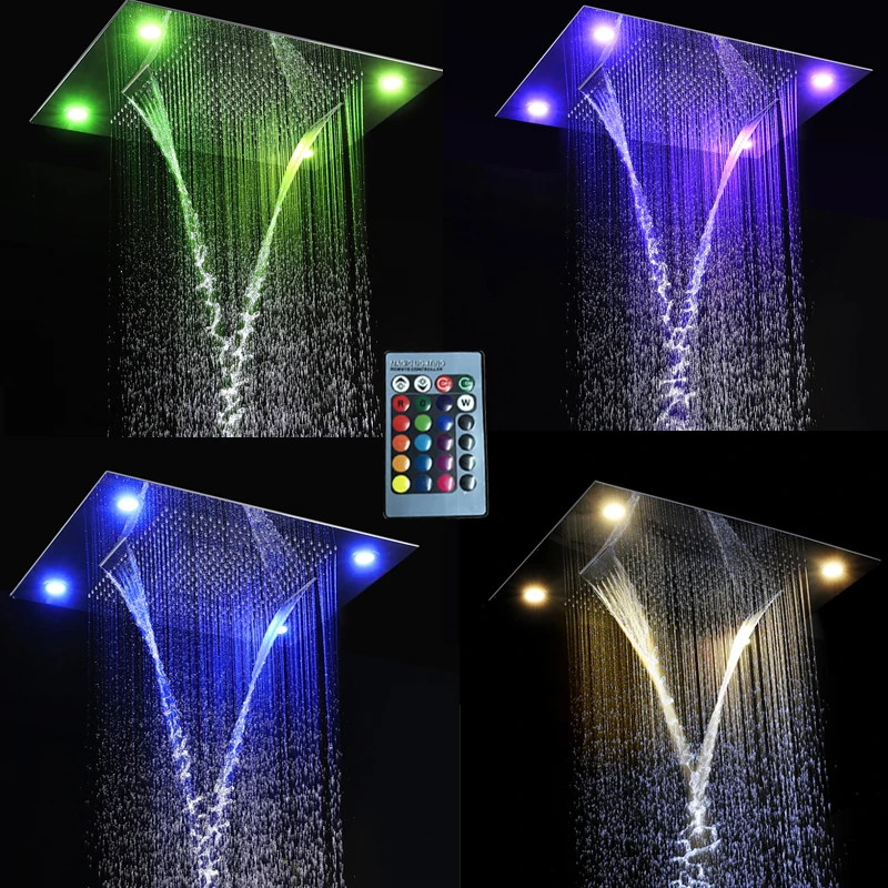 Beste Koop Moderne Douchekoppen 600*800mm LED spray hoofd afstandsbediening led kleur 304 rvs regen mist waterval Goedkoop