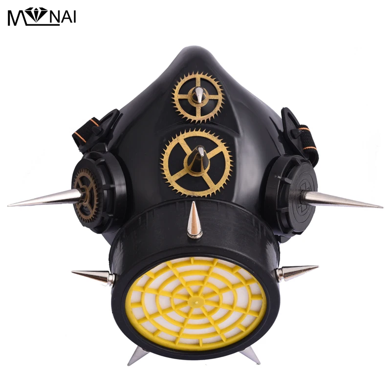 Beste Kopen Steampunk Klinknagel Masker Hip Hop Halloween Party Punk Maskers Motorfiets Masker Cyber Respirator 1 Bus IK Klep Maskers Met Gears Goedkoop.