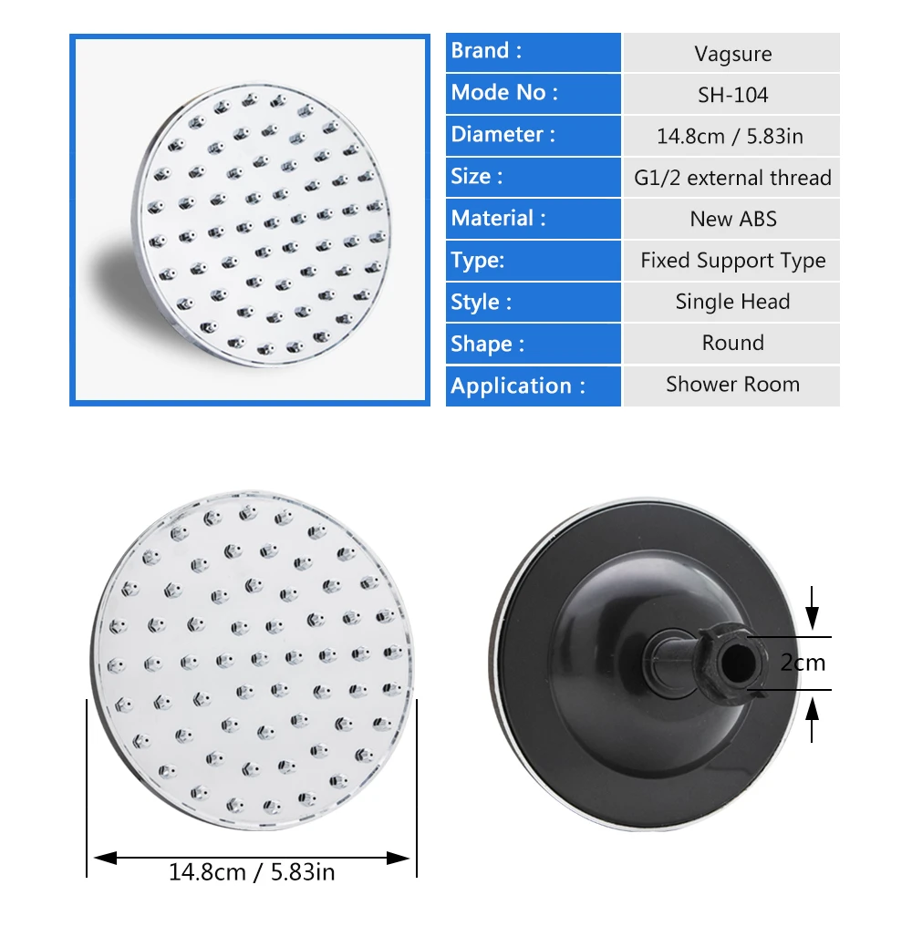 Beste Kopen 1 Pcs Ronde Vorm 14.8 cm Diameter Verchroomde ABS Silicon Rubber Waterbesparende Regen Top Douchecabine Kamer Dak Hoofd regenval Goedkoop.