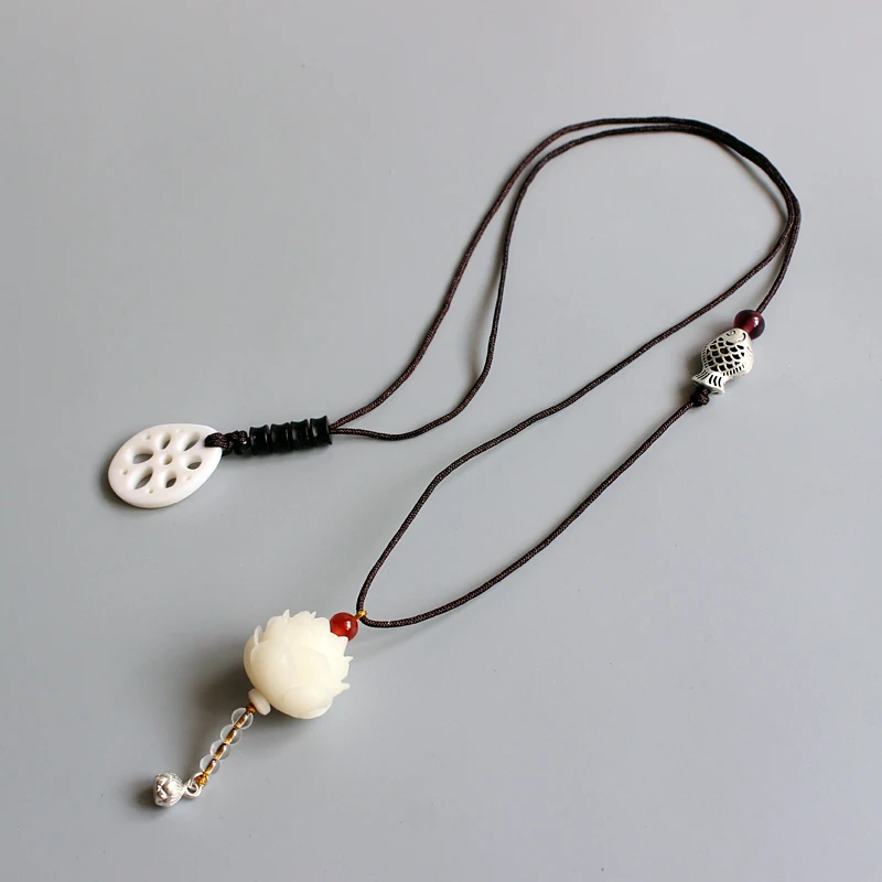 Goede Kopen 2017 Nieuwe Mode Bodhi Zaad Handgemaakte Lotus Bloem Hanger Elegante Touw Lange Ketting Voor Vrouwen Meisje Etnische Sieraden Groothandel Goedkoop