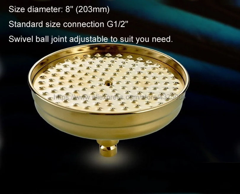 Beste Koop 8 Inch Goud Kleur Ronde Douchekop Messing Water Regens Met Douche Badkamer Top spuiten Nsh050 Goedkoop