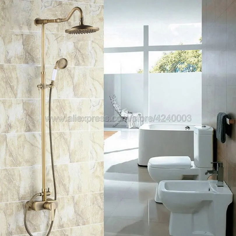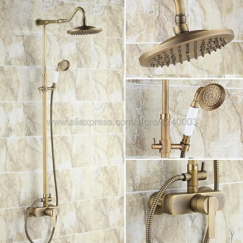 . Kopen Goedkoop Antiek Messing Wandmontage Badkamer Douchekraan Ronde Regendouche W Handdouche Mengkraan Krs206 Online.