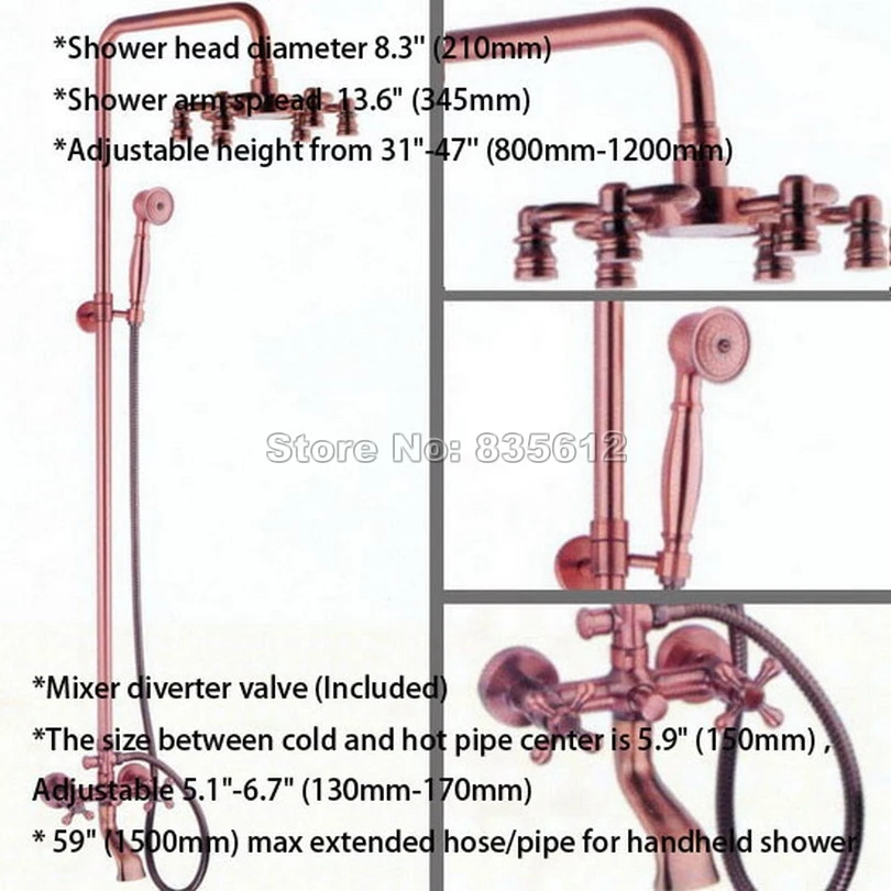Kopen Goedkoop Badkamer Wandmontage Antieke Rood Koper Dual Cross Handvatten Regen Douchekraan Set met Douchekop Bad Mengkraan Wrg014 Prijs