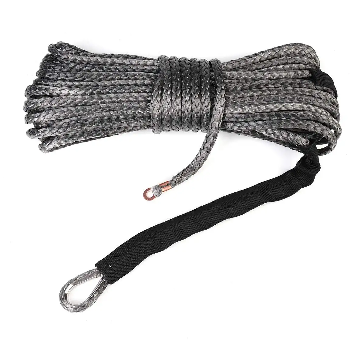 Beste Koop KiWarm 1 pcs Duurzaam 6mm * 15 M 7000lbs Zwart Synthetische Winch Touw Kabel Lijn Met Haak voor ATV UTV Off Road Goedkoop