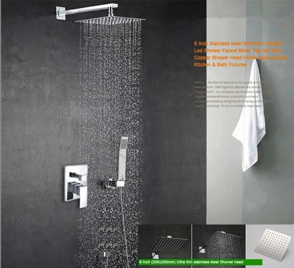 Goede Koop Badkamer Douchekop Nozzles De Filter 8 \"vierkante Rvs Vierkante Regendouche Mengkraan Douche Arm Set Chuveiro Goedkoop.