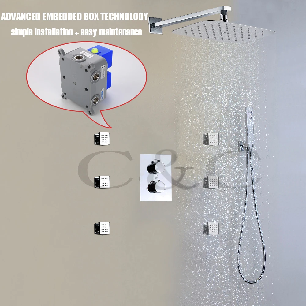 Goede Kopen Thermostatische Badkamer Douche Kraan Set Air Drop Regendouche Eenvoudige Installatie Met Embedded Box 002T 30X20TA F Goedkoop.