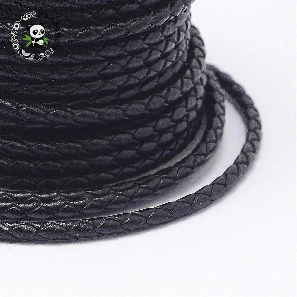 . Kopen Goedkoop 1 Roll Zwart Lederen Gevlochten Ronde Touw Met Spool, 3mm 4mm 5mm 6mm dikke, Lederen Koord. Online.