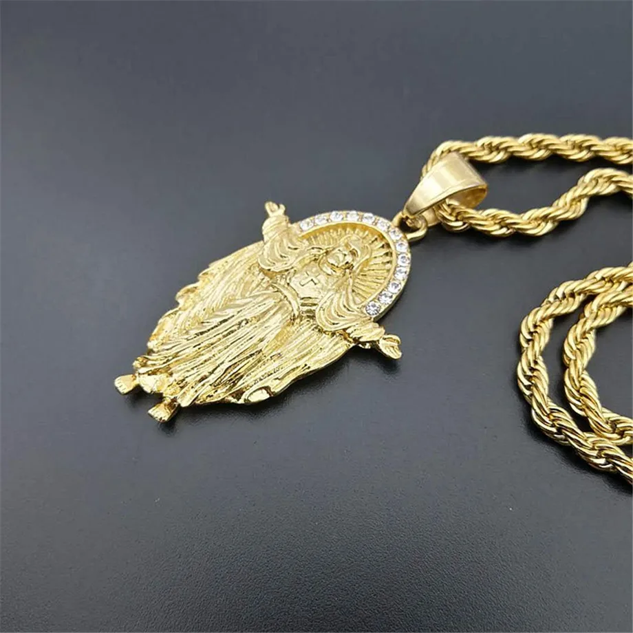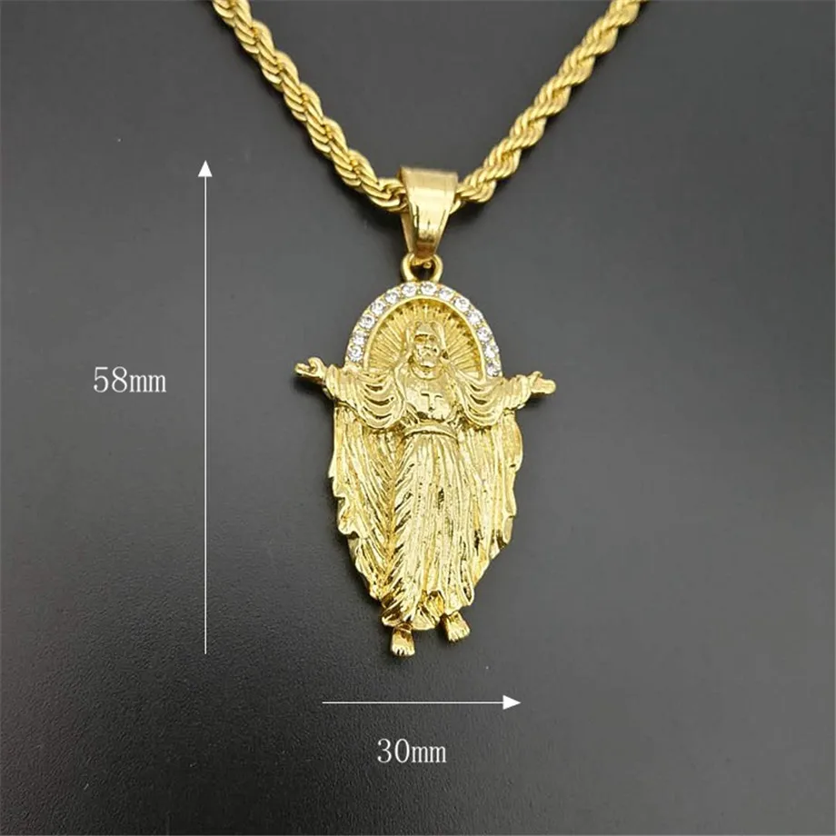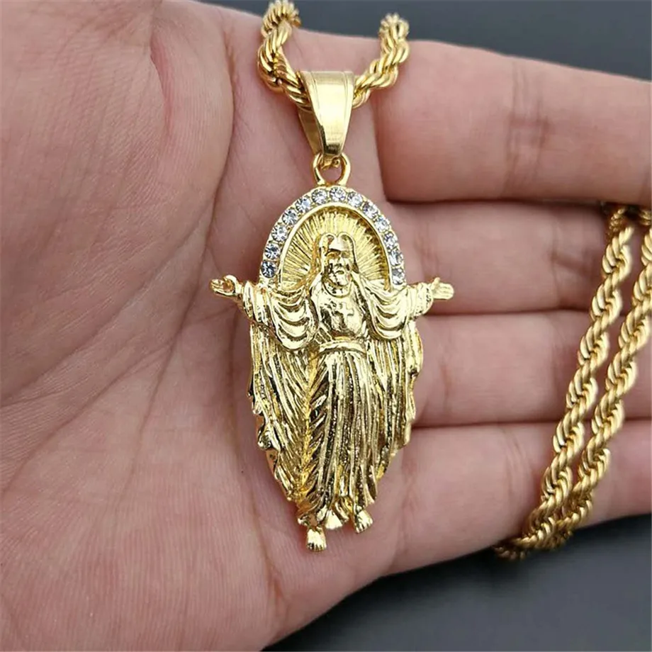 Kopen Goedkoop Hip Hop Iced Out Jezus Kruis Hanger Met Touw Ketting Goud Kleur Rvs Rhinestone Kettingen Christian Sieraden Online.