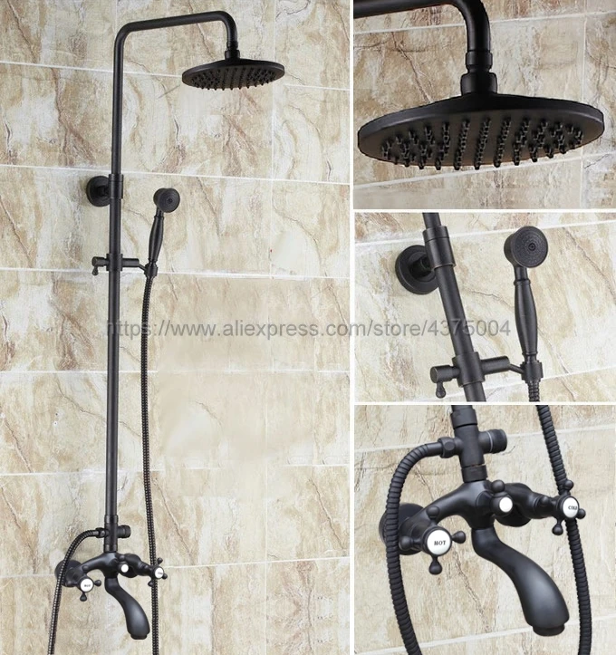 Beste Koop Zwarte Olie Gewreven Messing Douche Set Kraan Wall Mounted 8 \"Regendouche Kraan Bad Mengkraan Handdouche nhg115 Goedkoop.