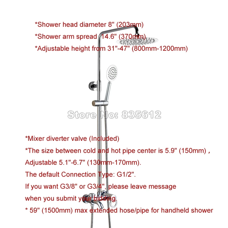 . Kopen Goedkoop Chrome Wall Mounted BathtubShower Kranen 8 \"Ronde Regendouche Hand Badkamer Mengkraan Neerslag Sets Wcy339 Online.
