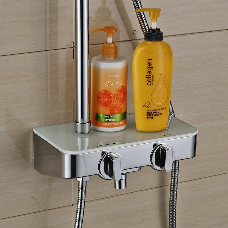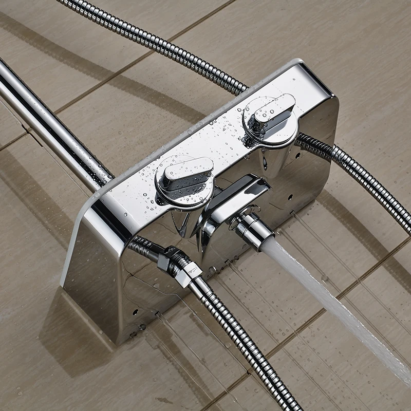Goede Koop Douchekraan Messing Chroom Wandmontage Bad Kraan Regendouche Vierkante Handheld Slide Bar Badkamer Mengkraan S Goedkoop