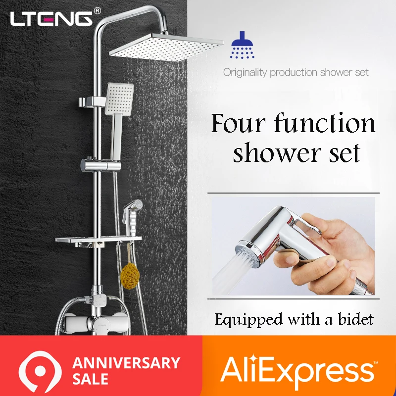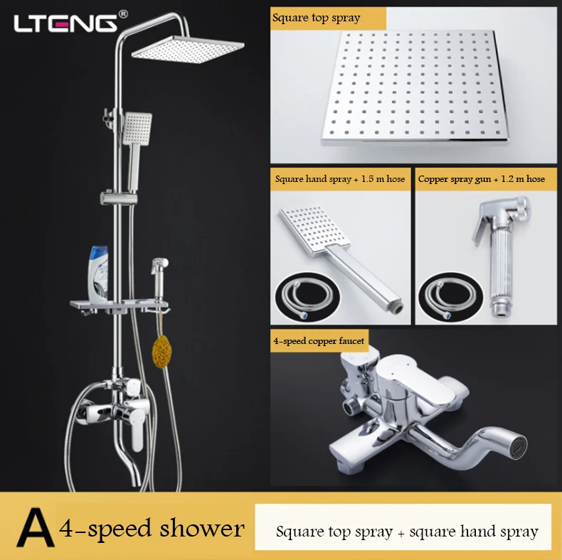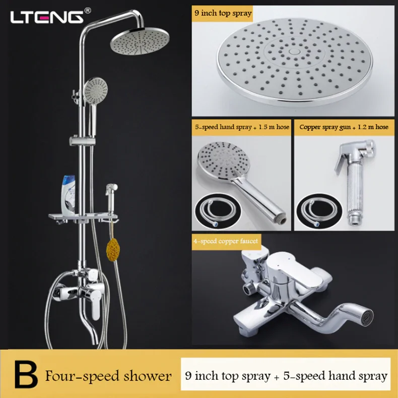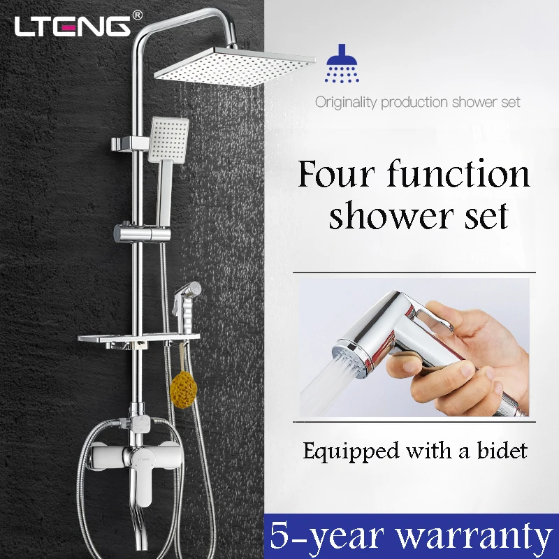 Beste Kopen LTENG badkamer douche set met vrouwen wassen spuitpistool koperen douche kraan keramische spoel regendouche douche systeem freeship Goedkoop.