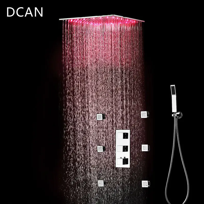 Goede Koop DCAN Luxe Regen Plafond 20 Douchekop LED Douche Set Kranen Tap Douche Kit Met 6 Body 2 jet en Thermostatische Mengkraan Goedkoop