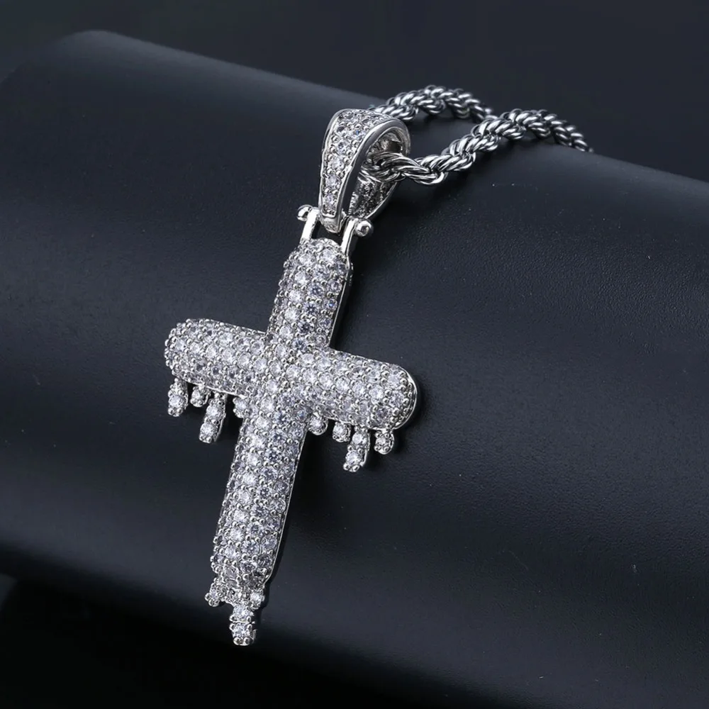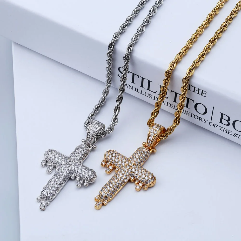 Beste Koop TOPGRILLZ mannen Hip Hop Religieuze Drop Cross Hanger Ketting Goud Zilver Kleur Kubieke Zirkoon Sieraden Kettingen Geschenken Touw Ketting Goedkoop.