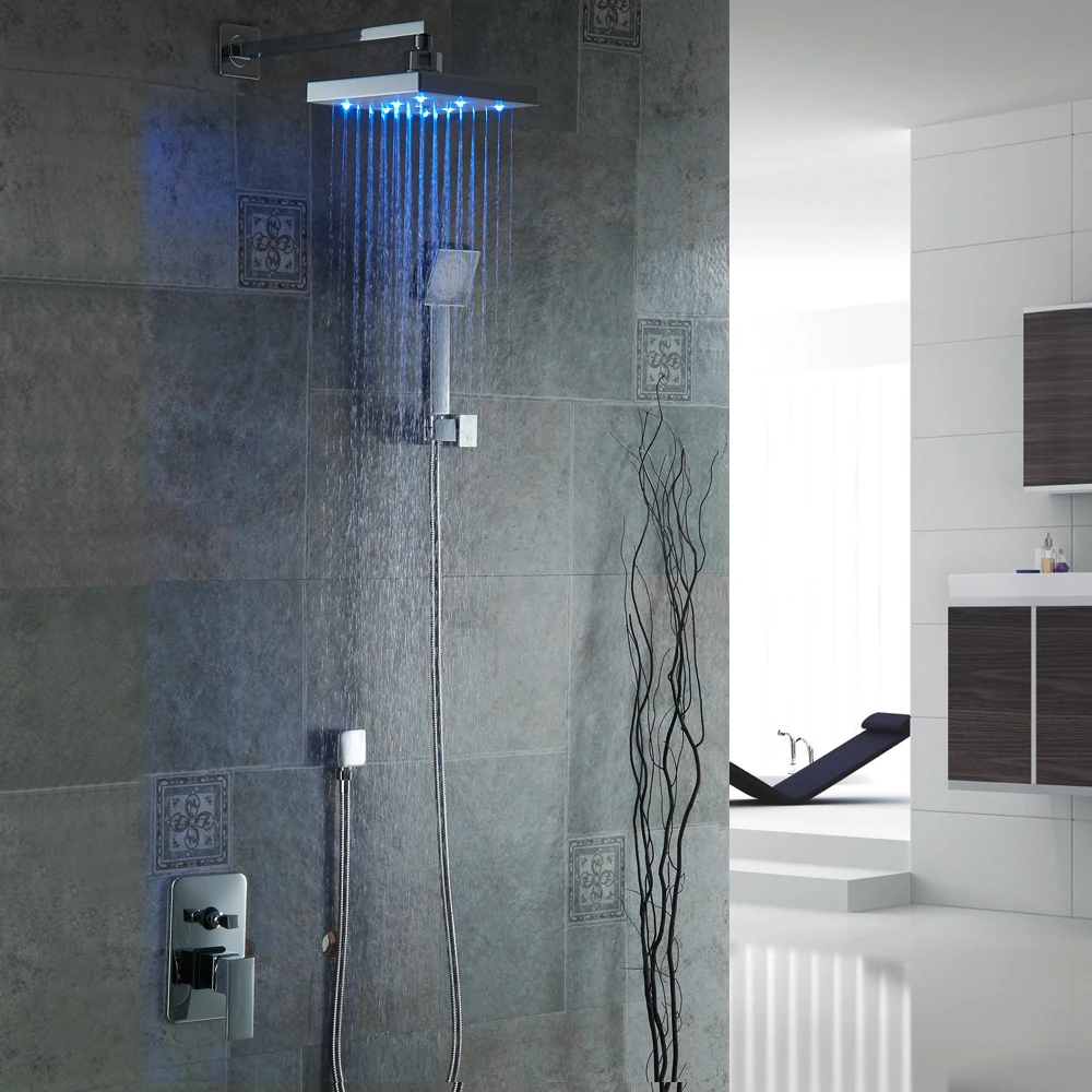 Kopen Goedkoop Mode Regen Douche Set 8 inch led douchekop Enkel handvat In Wall Kraan Bad en Douche Mixer Brass chrome BR LED Prijs.