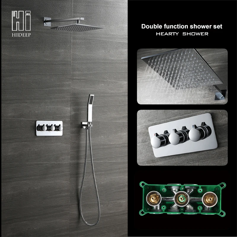 . Kopen Goedkoop HIDEEP Massief Messing Badkamer Douche Set Regen Hand Douchekop Bad Douche Mixer Regendouche Kit Muur Ingebed Online.