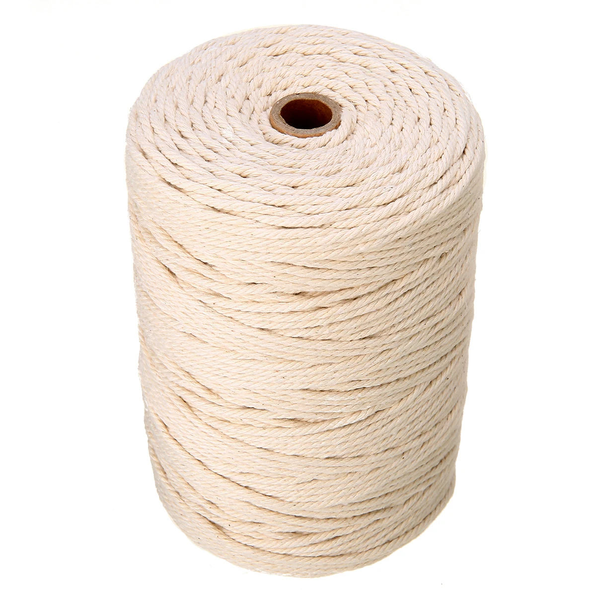 . Goede Kopen 1 st 3mm * 220 m Natuurlijke Beige Katoen Twist Koord Touw Artisan Craft Macrame String voor Handgemaakte DIY craft Goedkoop.