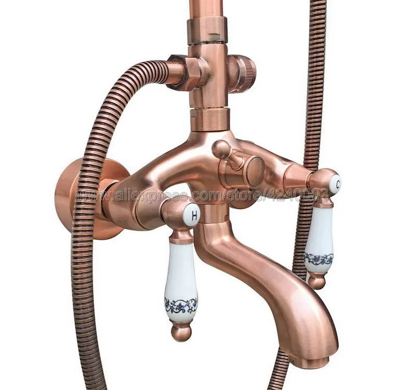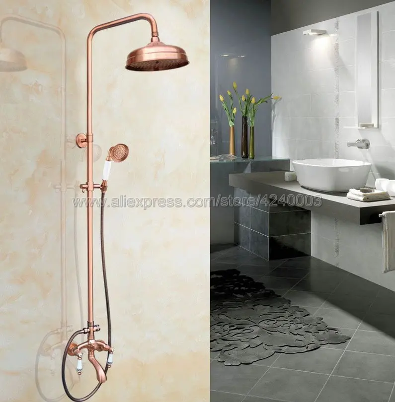 Kopen Goedkoop Antiek Rood Koper Badkamer Rain Douchekraan Set 8 Rainfall Douchekop Met Handdouche Sproeier Dubbele Cross Handvatten Krg534 Prijs.