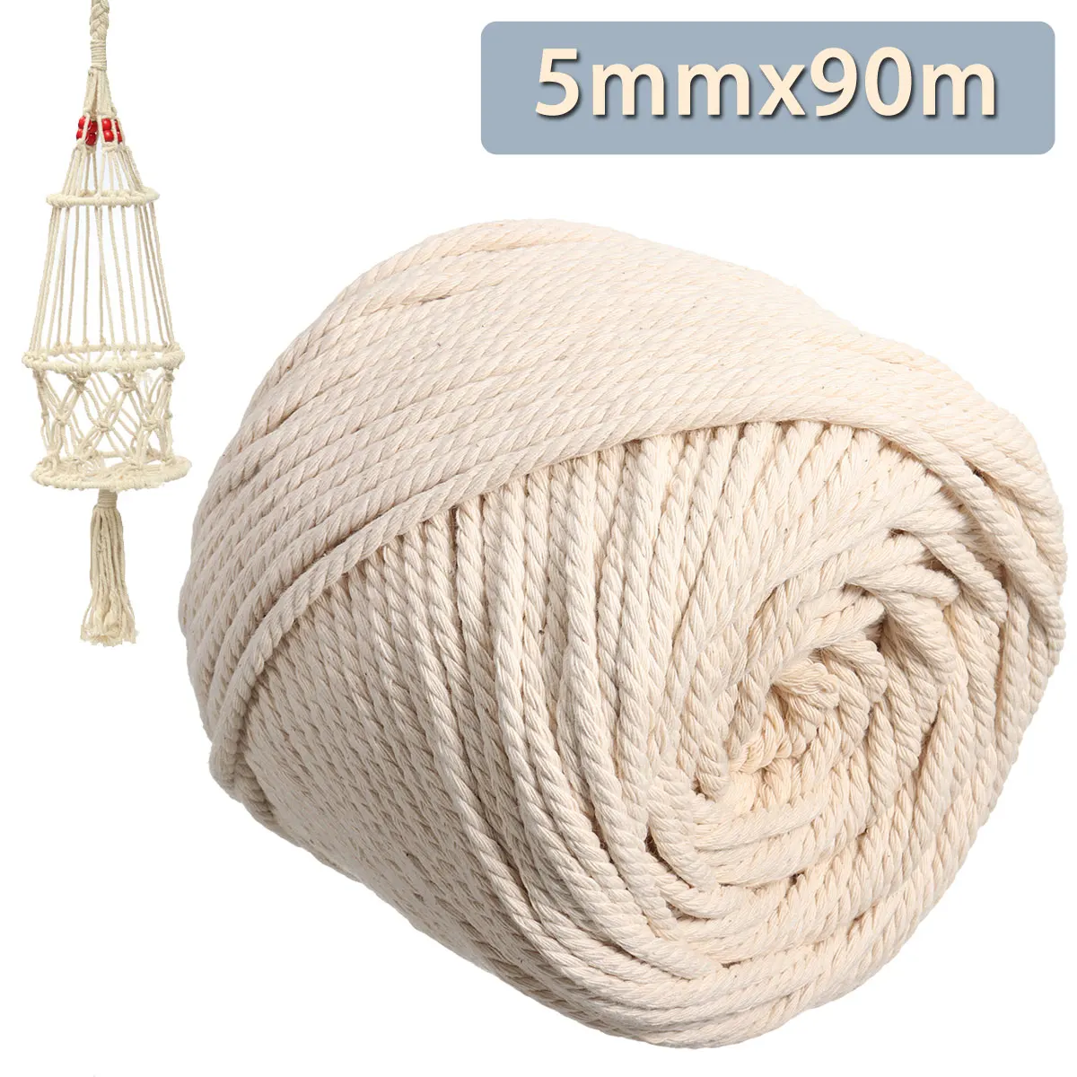Goede Koop KiWarm 5mm x 90 m Natuurlijke Beige Zachte Katoen Twisted Cord Craft Macrame Rope String DIY Handgemaakte Koppelverkoop Draad koord Touw Goedkoop