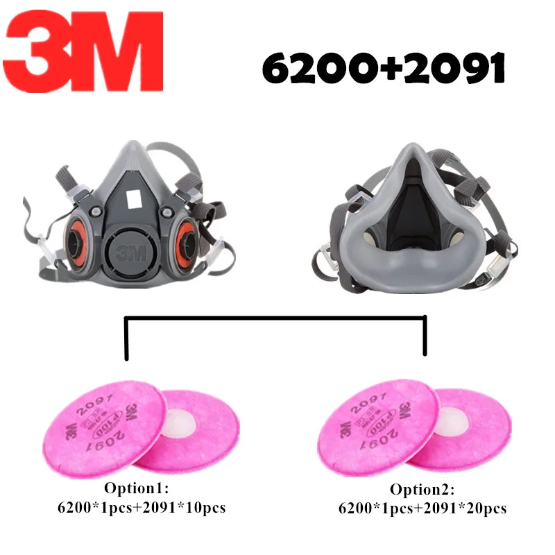 Beste Kopen 3 M 6200 2091 Verf Spray Half gezicht Gasmasker masker Particulate Filter Pak Industrie Veiligheid Werken Stof Rook Proof masker Goedkoop