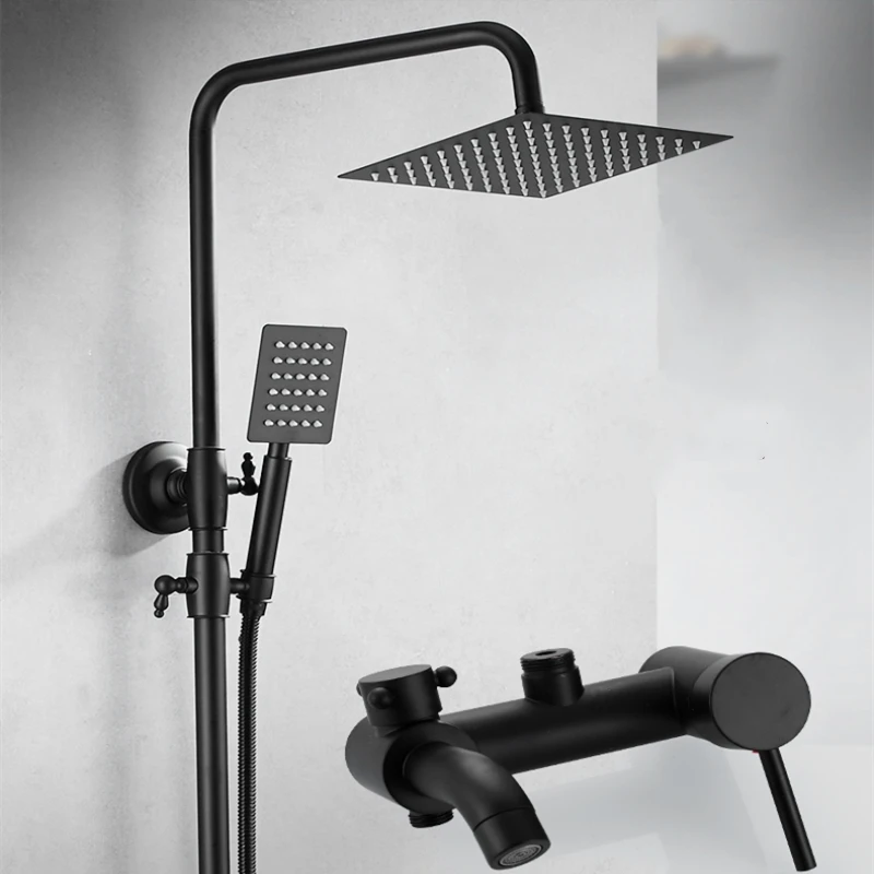Beste Koop Messing Mat Zwarte Douche Set Badkamer Waterval Kraan Wall Mount Regendouche Systeem Set Enkele Handgreep Mixer Douchekop Goedkoop