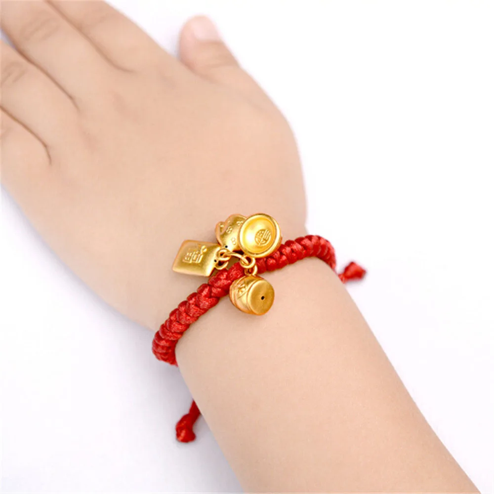 Beste Kopen Baby Rood Touw 999 Zilveren Gouden Charm Hanger Kinderen Armband 0 7 Jaar Lucky Armband Hand Gebreide Anti Bite ontwerp Groothandel Goedkoop.