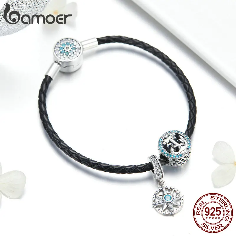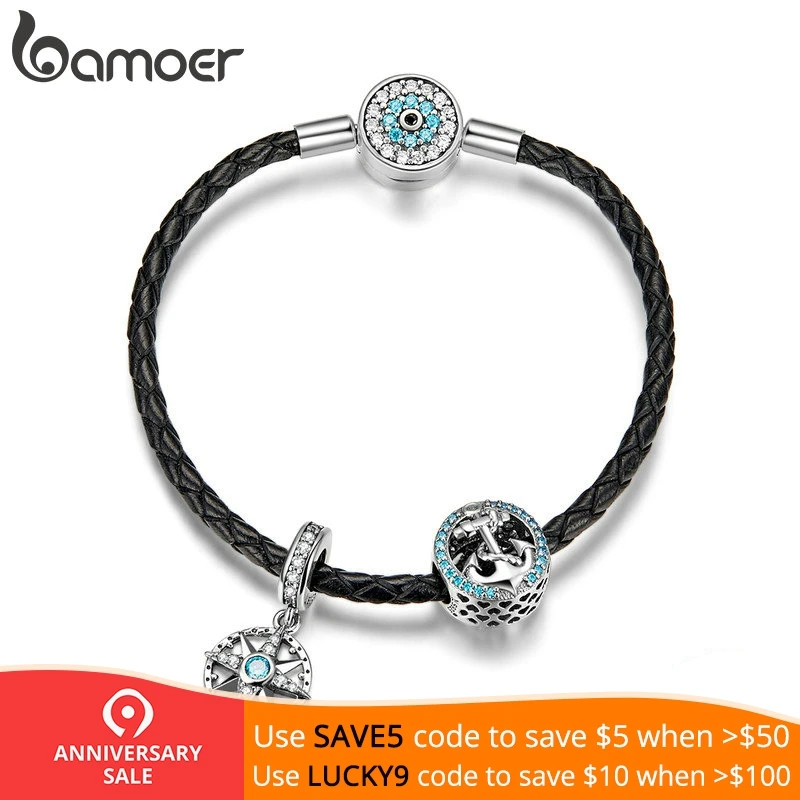 . Kopen Goedkoop BAMOER Hoge Kwaliteit 925 Sterling Zilver Blauw Oog Sluiting Anker Touw Strand Bedels Armbanden voor Vrouwen Zilveren Sieraden SCB819 Prijs.