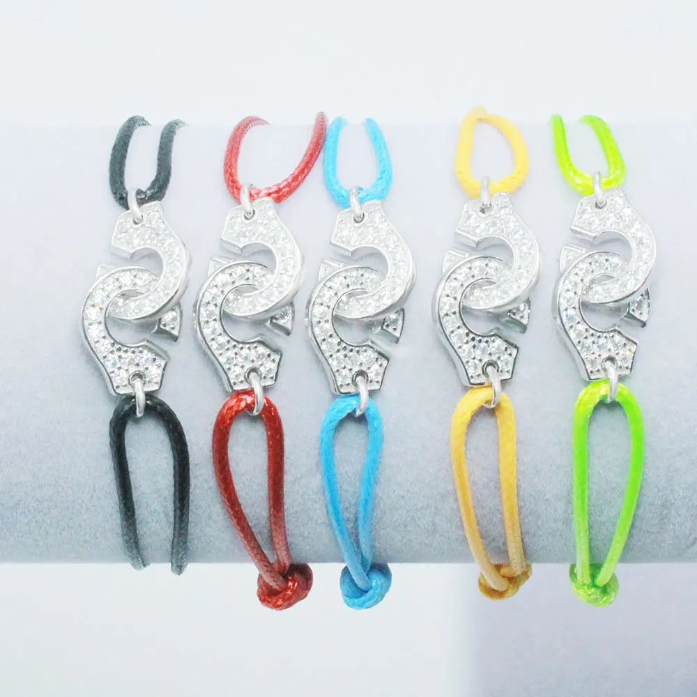 Beste Koop Frankrijk Populaire Sieraden 925 Sterling Zilveren Handboeien Armband Mannen Vrouwen Met Touw Zirkoon Zilveren Hanger Armband Menottes Goedkoop