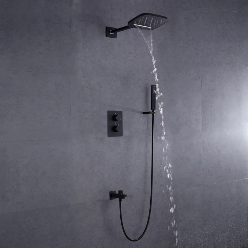Kopen Goedkoop DULABRAHE Waterval Badkamer Douche Mengkraan Set Wandmontage Regen Bad Douchekop Tap Zwart Zilver Prijs