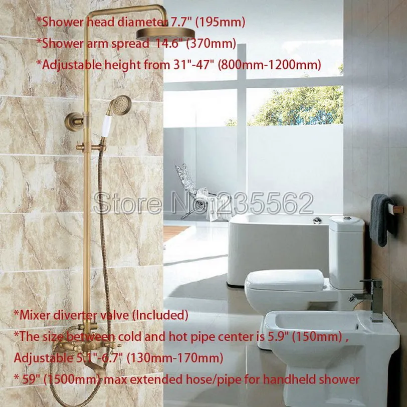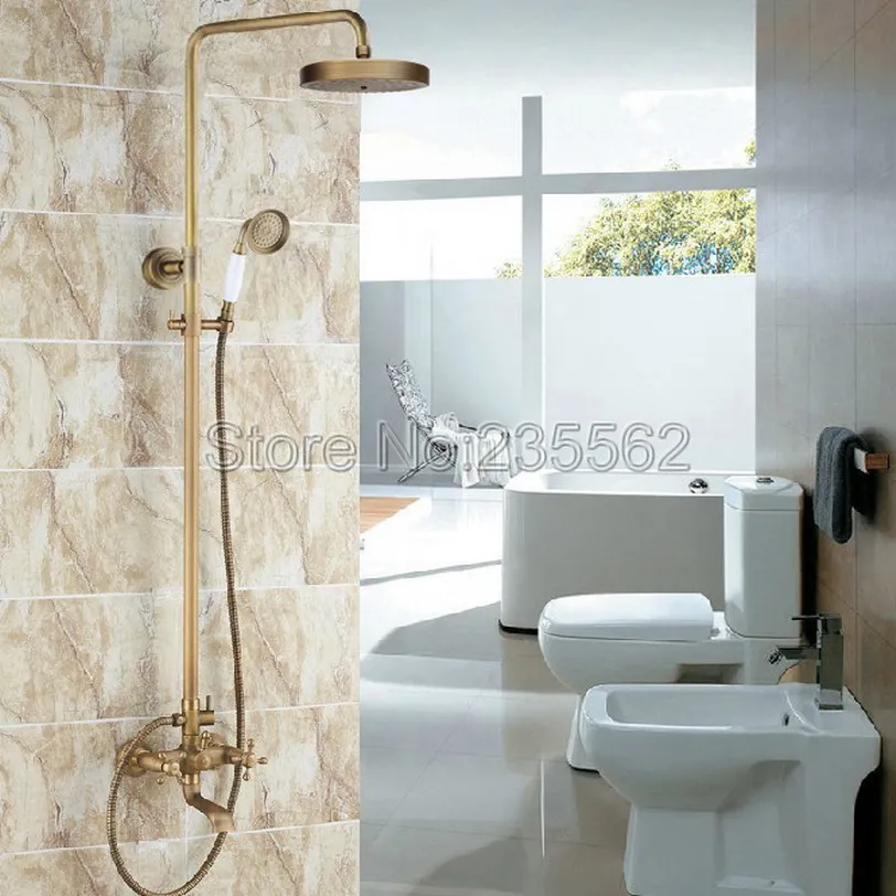 . Kopen Goedkoop Nieuwe Antiek Messing Douche Set Mengkraan 8 \"Regendouche met handdouche Badkamer Wandmontage Bad Kranen lrs128 Online.