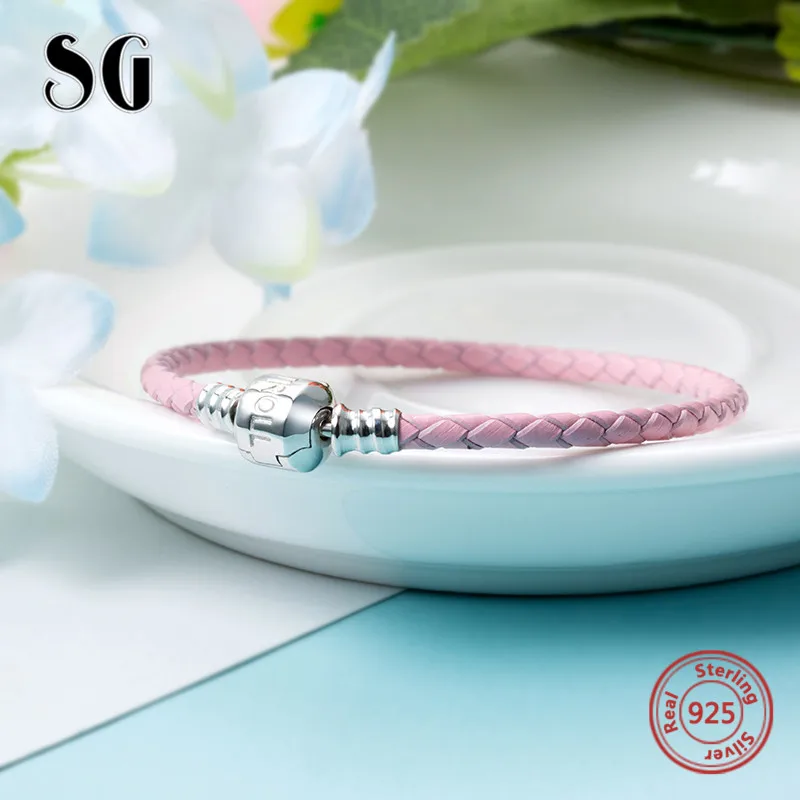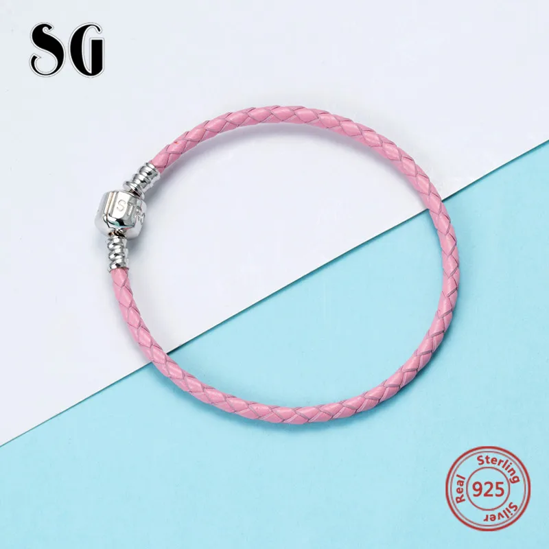 Goede Koop SG Luxe 100% 925 Sterling Zilver 18 cm Lederen touw Ketting DIY Charms Authentieke Armband Mode Sieraden maken voor vrouwen geschenken Goedkoop
