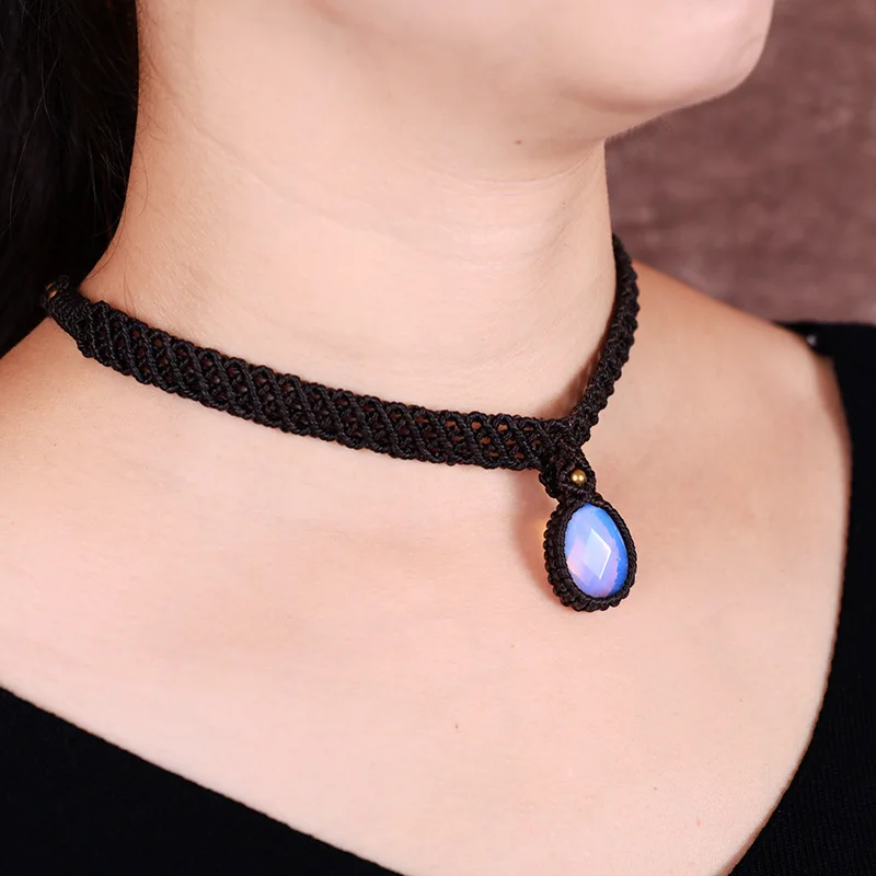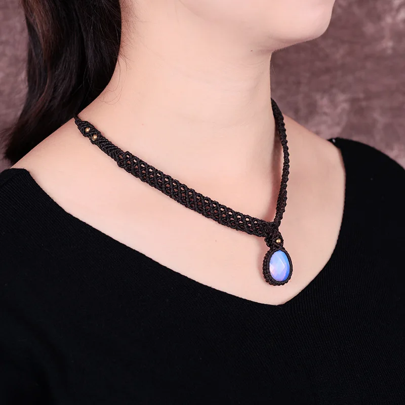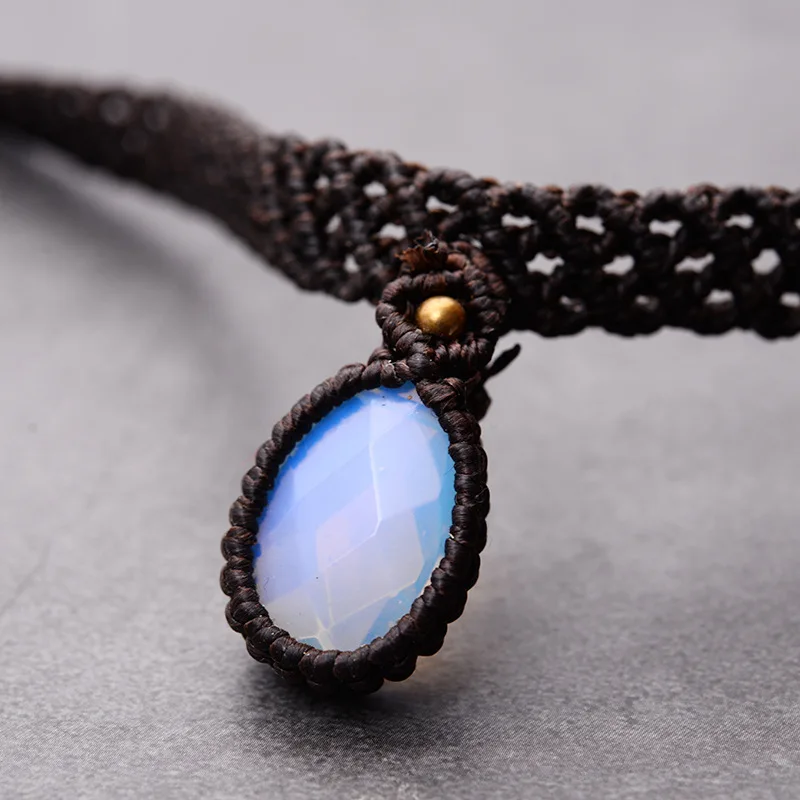 Goede Koop BOEYCJR Natuursteen Gevlochten touw Ketting Choker Ketting Handgemaakte Sieraden Vintage Etnische Hanger Ketting Voor Vrouwen Gift 2017 Goedkoop.