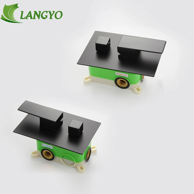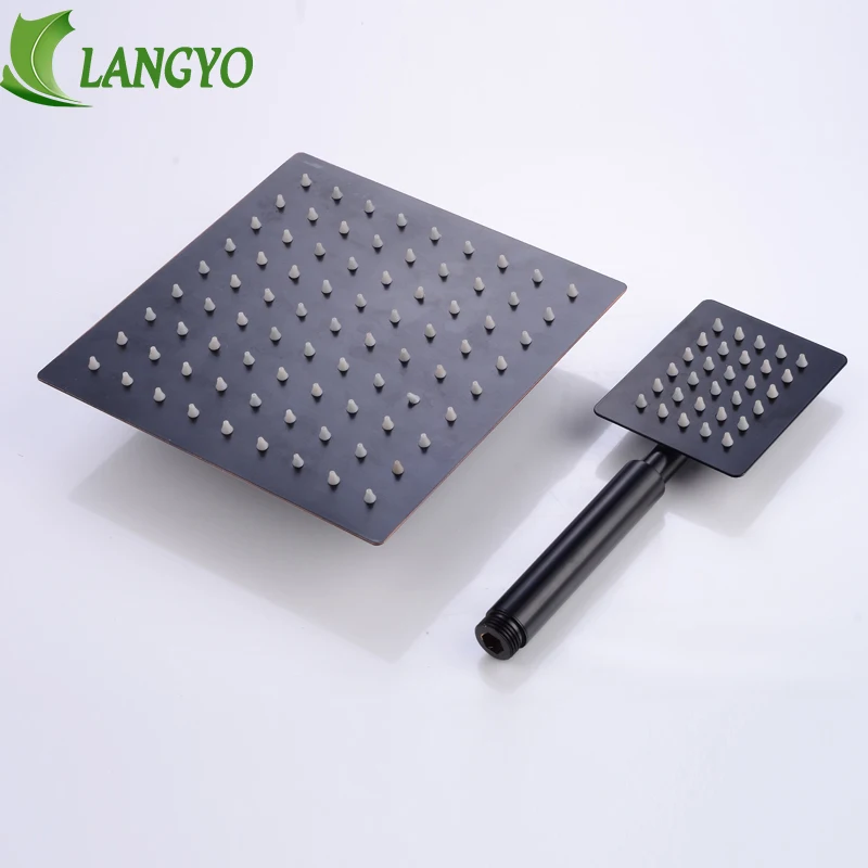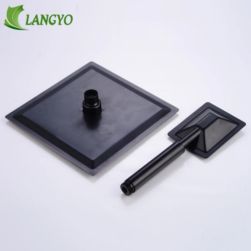 Beste Koop LANGYO Messing Zwarte Bad Douche Faucets8 12 \"Regendouche Badkamer Douche Set Diverter Mengkraan Douche Systeem Wandmontage Goedkoop