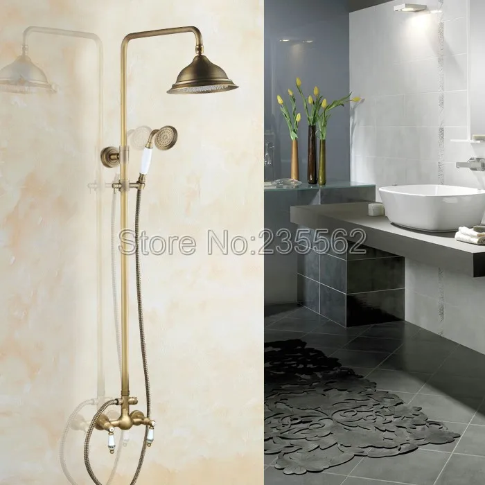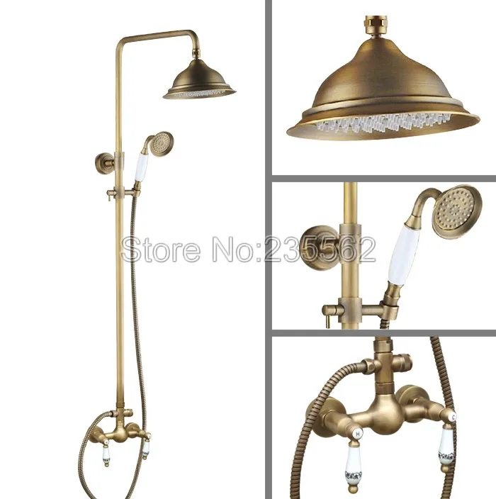Kopen Goedkoop Wandmontage Antieke Messing Badkamer Regendouche Kraan Set met Douchekoppen + Keramische Handheld Spray Mengkranen lan106 Online.