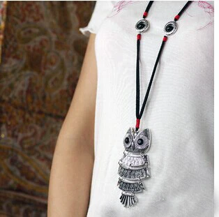 Kopen Goedkoop Hand made rope tibetaanse 925 zilveren uil etnische ketting vrouwen accessoires colar coruja collier femme collares etnicos hibou buho Online