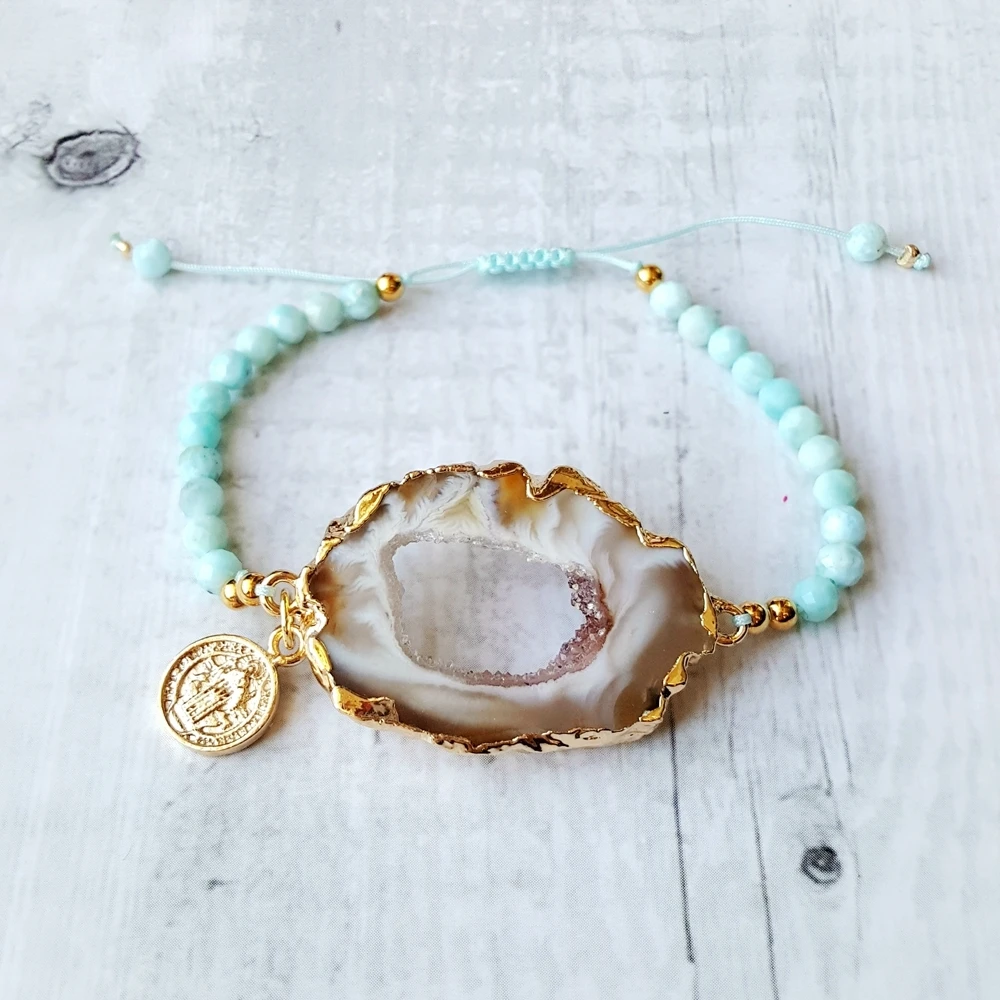 Kopen Goedkoop Lii Ji Larimar Drusy Druzy Crystal Agaat Natuursteen Touw Armband Voor Vrouwen Man Sieraden Dropshipping Online.