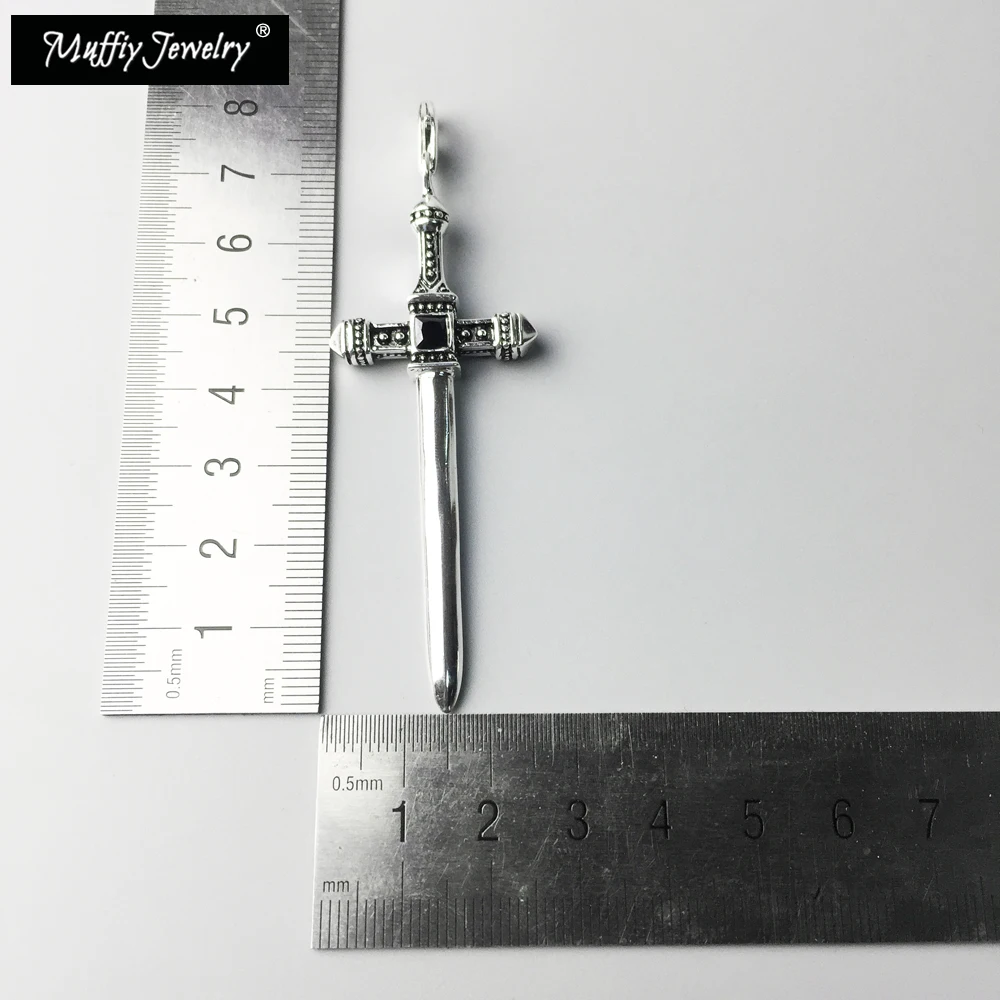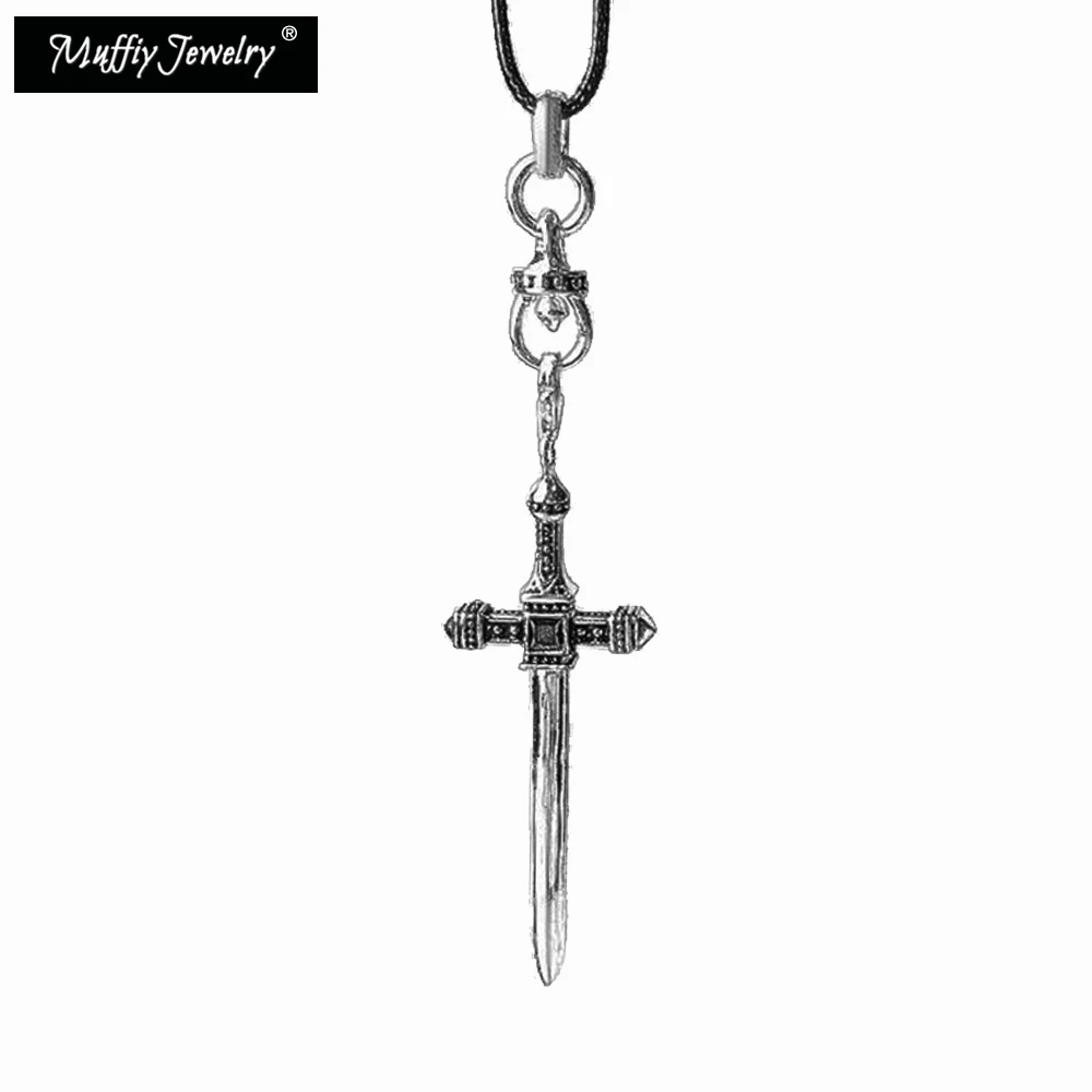 . Beste Kopen Zwaard Lederen Touw Ketting Hanger Ketting, Thomas Stijl Punk Kettingen Fashion Gift Sieraden in 925 Sterling Zilver Voor Mannen vrouwen Goedkoop.