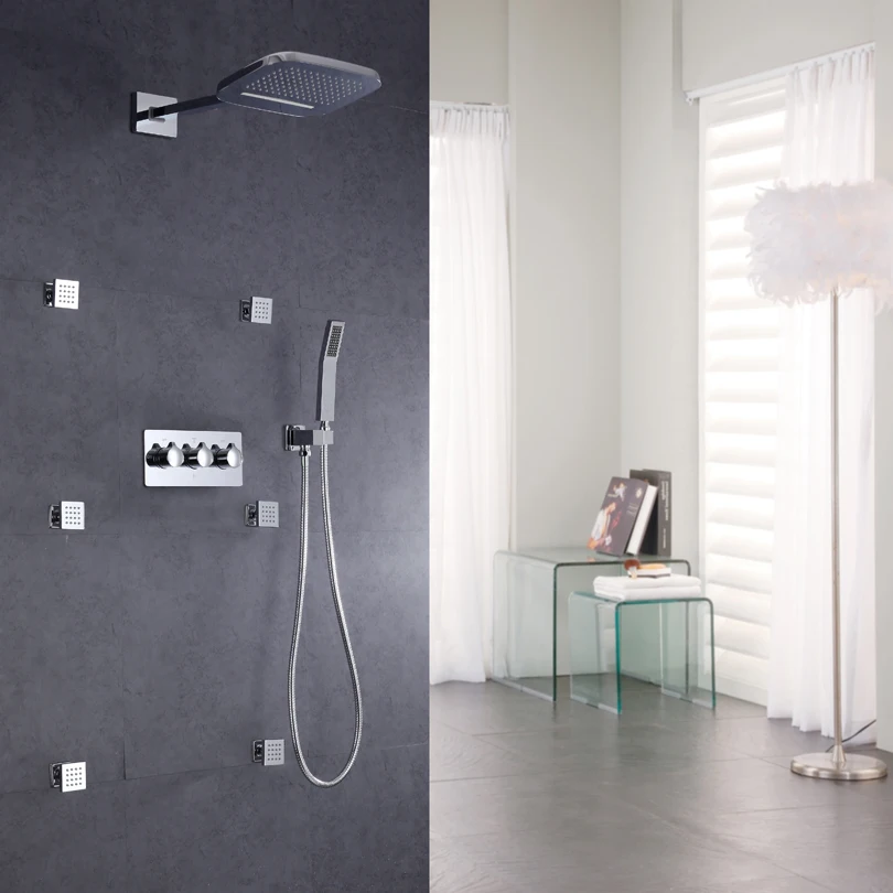 Kopen Goedkoop DULABRAHE Waterval Badkamer Douche Mengkraan Set Wandmontage Regen Bad Douchekop Tap Zwart Zilver Online