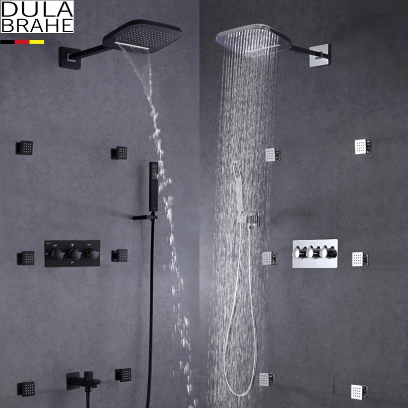 . Goede Kopen DULABRAHE Waterval Badkamer Douche Mengkraan Set Wandmontage Regen Bad Douchekop Tap Zwart Zilver Goedkoop.