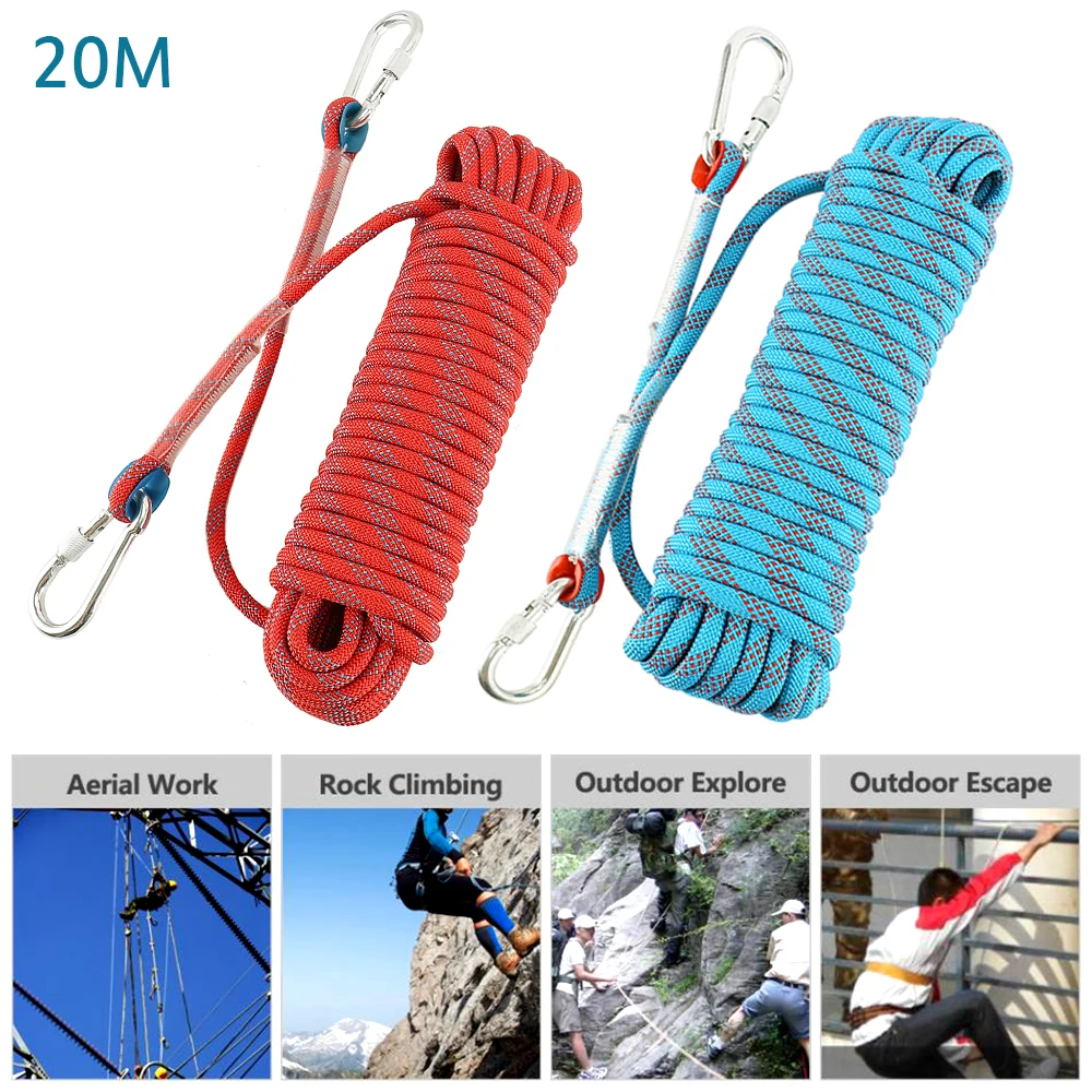Goede Kopen Outdoor Klimmen Touw Lengte 20 m Diameter 10mm Survival Fire Escape Veiligheid Met Karabijnhaak Bergbeklimmen Apparatuur Goedkoop